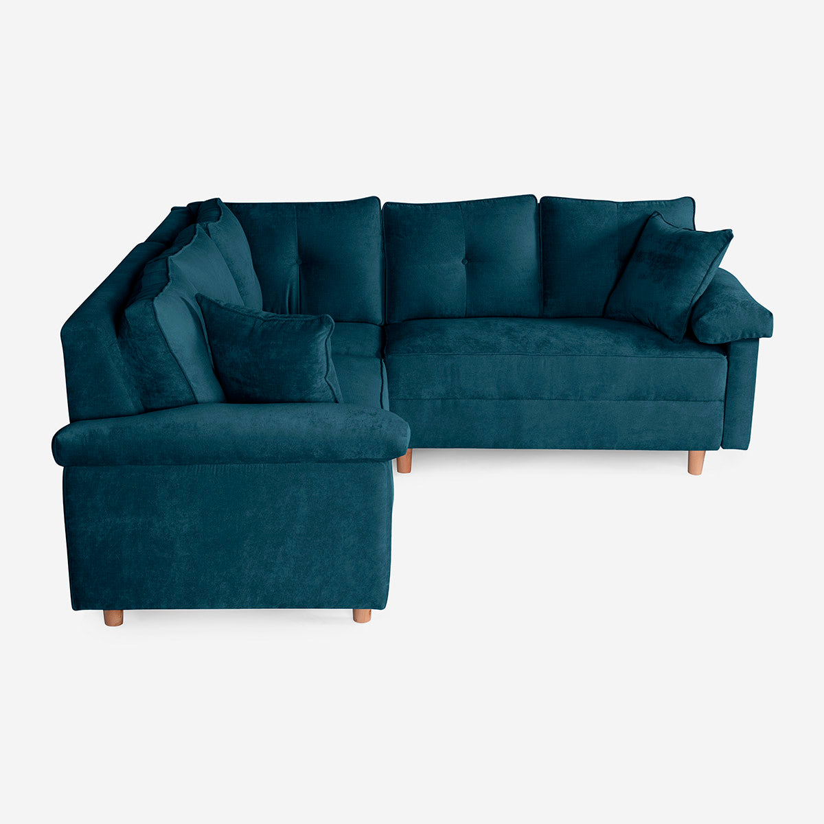 - Medidas: 201 cm (largo izquierdo) x 200 cm (largo derecho) x 85 cm (alto). Altura de asiento: 45 cm.